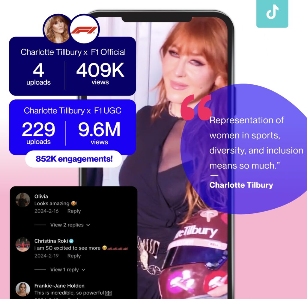 Insights like these can fuel innovative partnership decisions. In fact, Charlotte Tilbury became the first beauty brand to partner with the Formula 1 Academy. And the campaign didn’t just make history — it was a runaway success:
