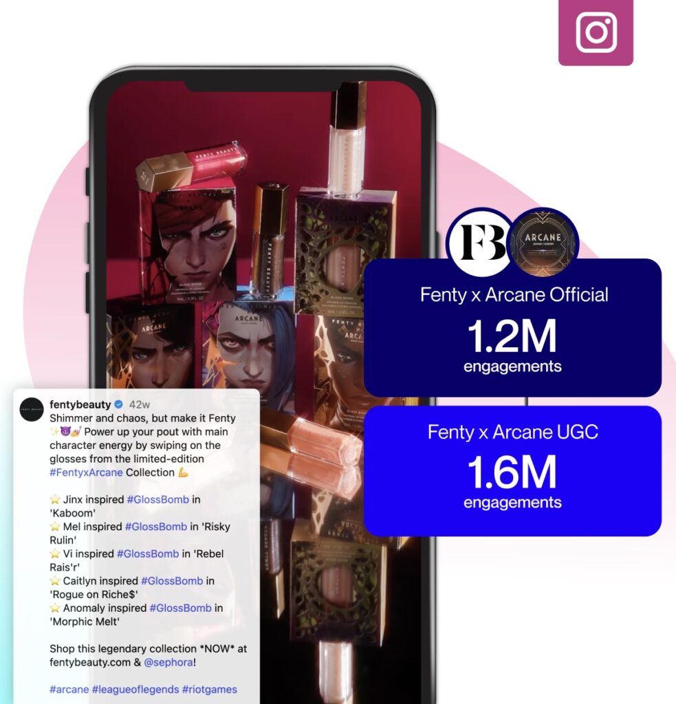 Riot Games capitalized on this by partnering with Fenty Beauty on a limited-edition makeup collection inspired by its hit series Arcane. The colab went viral: