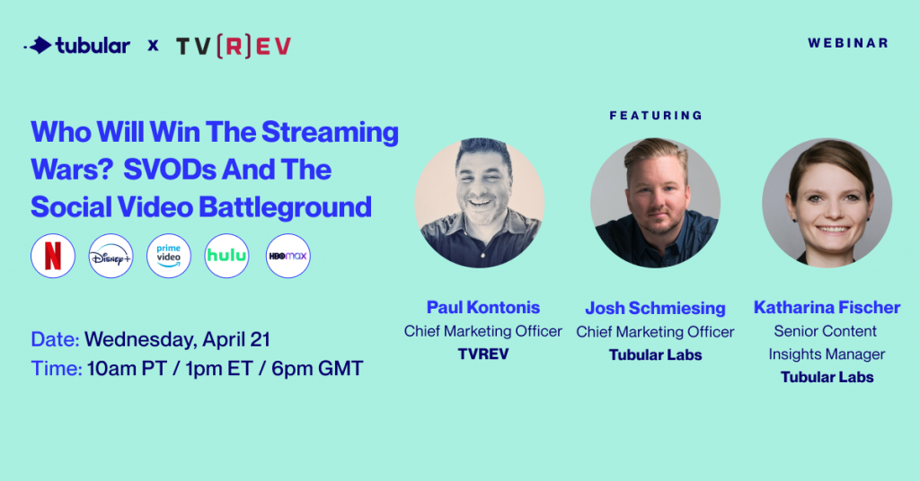 Watch the on-demand webinar where we join Chief Marketing Officer and media expert Paul Kontonis from TVREV, to talk through compelling findings from Tubular’s most recent SVOD report and key takeaways for the industry.