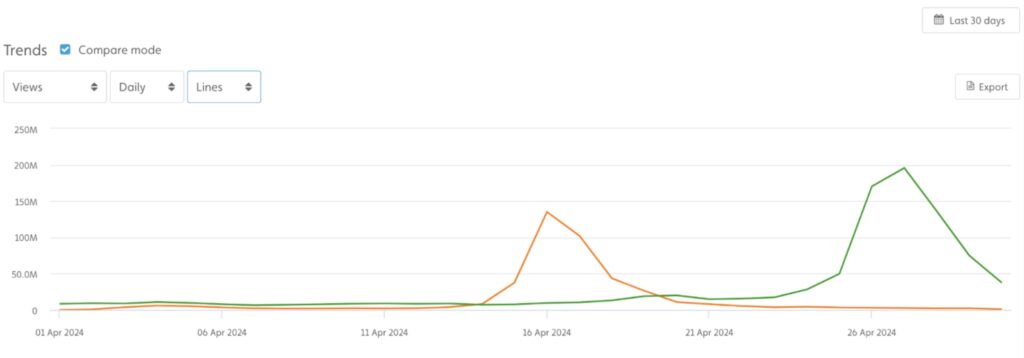 From Q1 2023 to Q1 2024, TikTok viewership of Angel Reese grew by 24.6%. Her viewership peaked during March Madness 2023, when Reese’s team, LSU, won the national championship against Iowa. That month, she earned 255 million views on TikTok.