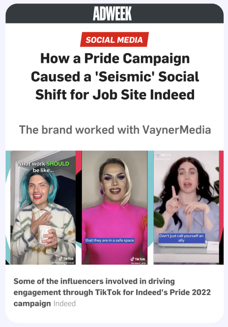 Indeed.com partnered with 13 LGBTQ+ creators across TikTok and Instagram to share their workplace experiences and help people find new, safe work opportunities.