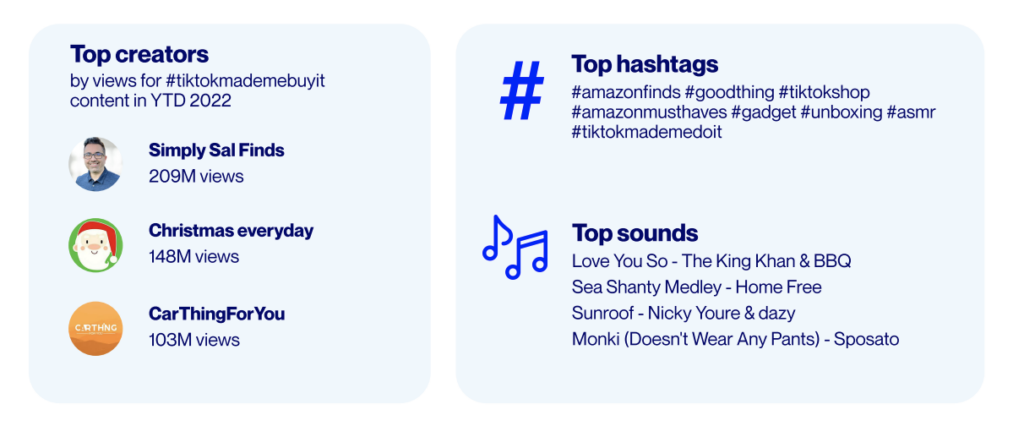 Platforms are enhancing ecommerce capabilities, making it easier than ever to connect brands, shoppers, and creators. #TikTokMadeMeBuyIt has gathered 6.4B views YTD and won’t be stopping anytime soon.