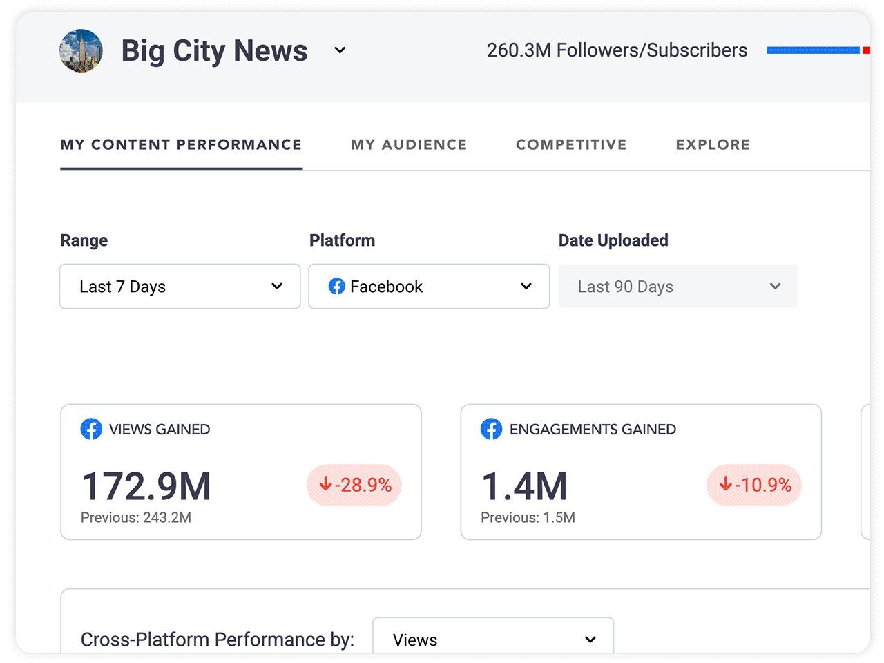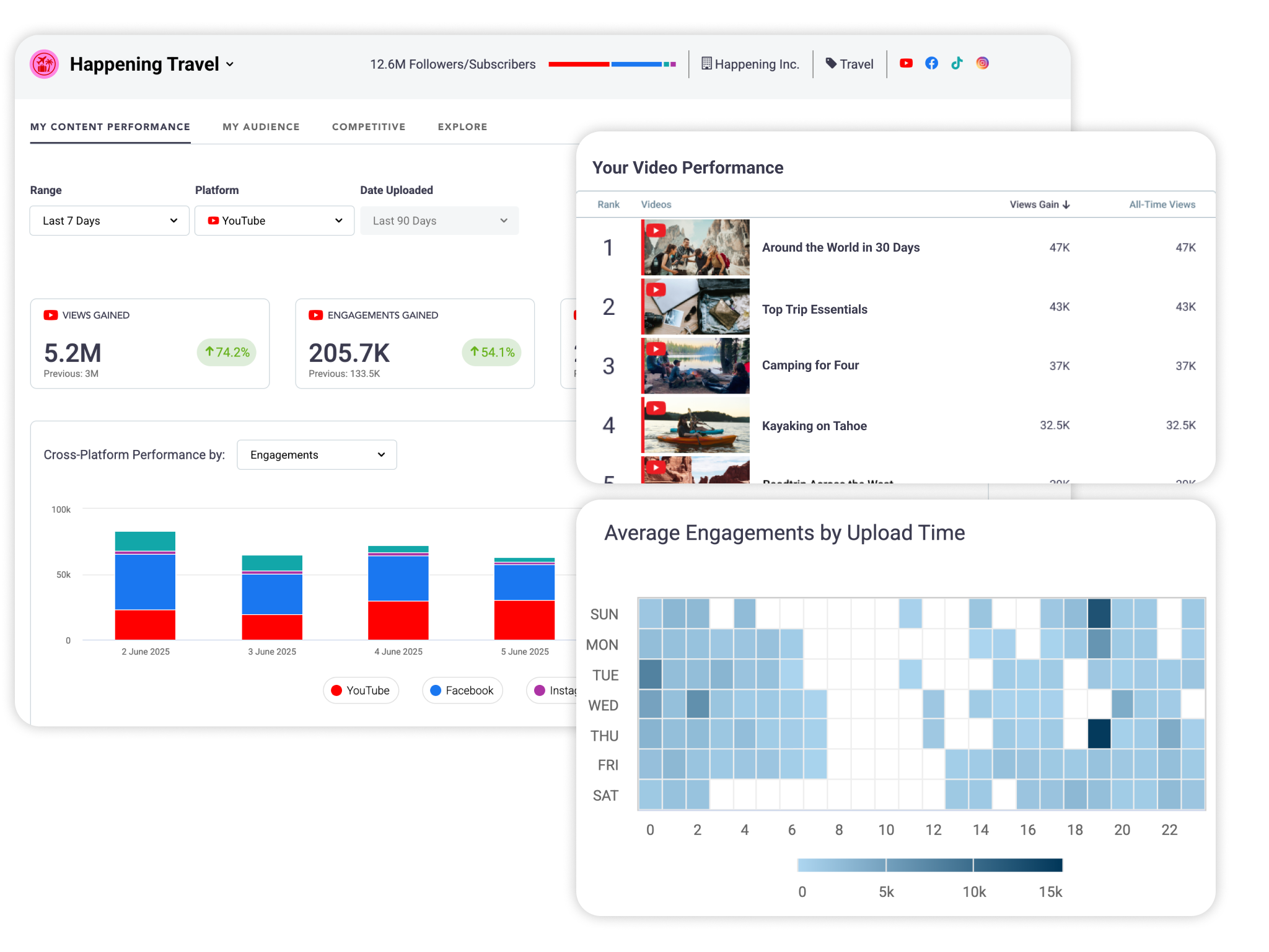 - Get at-a-glance insights. See which videos earned the most views and engagements on each platform